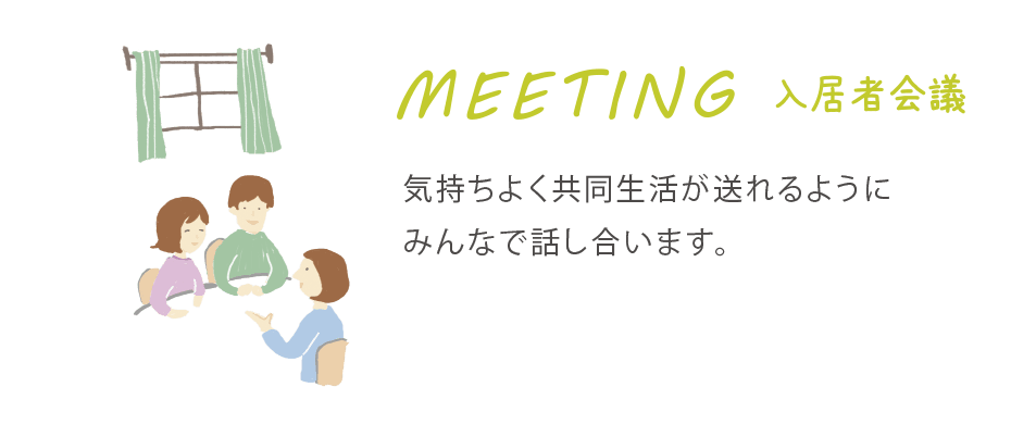 水道光熱費、日用品費、食費等の費用は半年に1回過不足金の清算を行います。水道光熱費と日用品費は利用者数で均等割計算、食費は個別に利用した分での清算となります。
